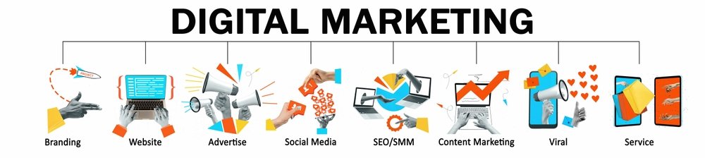 Digital marketing is the process of promoting a business, brand, or service through online channels to reach the right audience. It includes strategies like search engine optimization (SEO), social media marketing, paid advertising, content marketing, and email campaigns to increase visibility, attract customers, and drive growth.